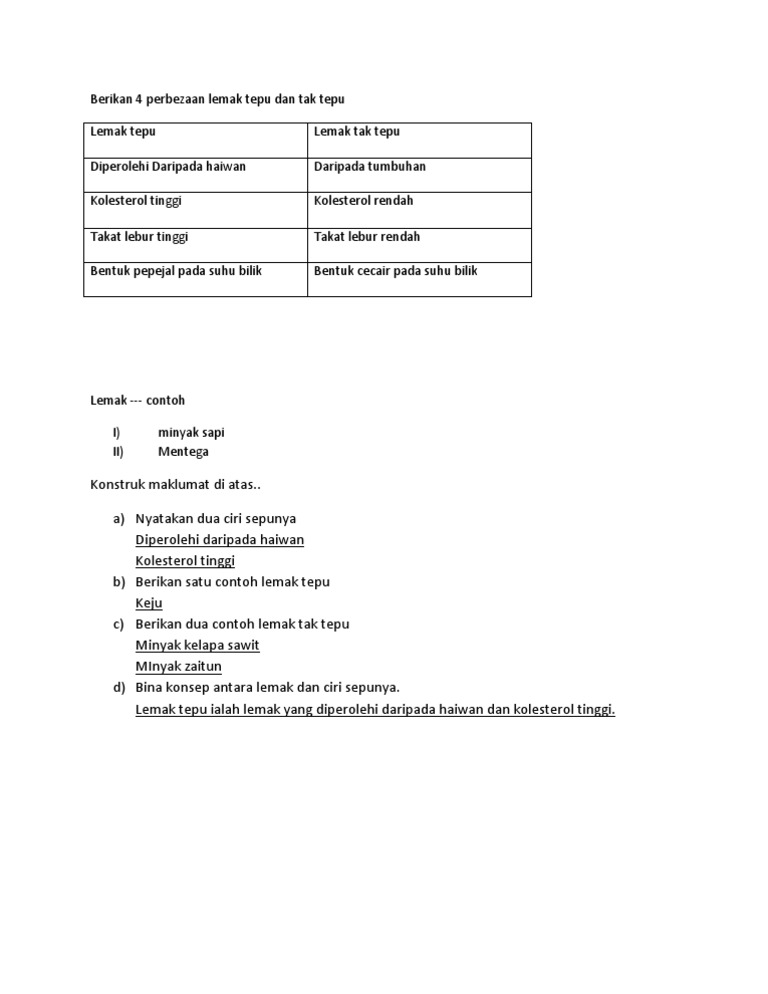 Berikan 4 Perbezaan Lemak Tepu Dan Tak Tepu Pdf